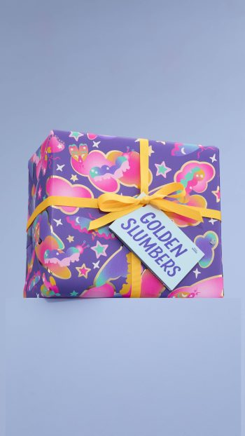 Lush Gift Designer Grace Cole, says “I wanted to create a design based on the idea of a glowing fairy surrounded by comets and stars. I love how the neon gradients make it feel otherworldly and full of cosmic magic.”